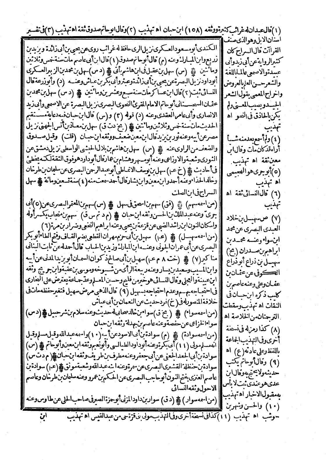 (7) (ص) سُهَيْل بن خَلاد الْعَبْدي الْبَصْرِيّ عَن مُحَمَّد ابْن سَوَاء وَعنهُ مُحَمَّد بن إِبْرَاهِيم بن صدران (بخ) سُهَيْل بن ذِرَاع أَبُو ذِرَاع الْكُوفِي عَن عُثْمَان بن عَفَّان وَعلي وَعنهُ عَاصِم بن كُلَيْب ذكره ابْن حبَان فِي الثِّقَات اه تَهْذِيب وَسَقَطت الترجمتان من الْخُلَاصَة اه