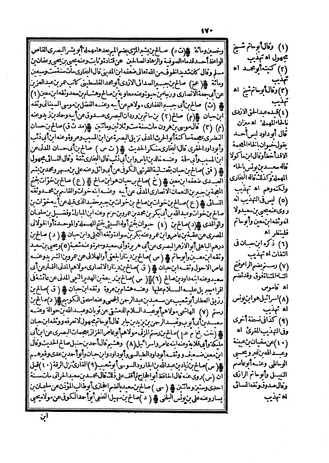 (د) صَالح بن دِرْهَم الْبَاهِلِيّ أَبُو الْأَزْهَر الْبَصْرِيّ عَن أبي هُرَيْرَة وَأبي سعيد وَسمرَة وَعنهُ شُعْبَة (5) وَيحيى بن سعيد وَثَّقَهُ ابْن معِين وَأَبُو حَاتِم