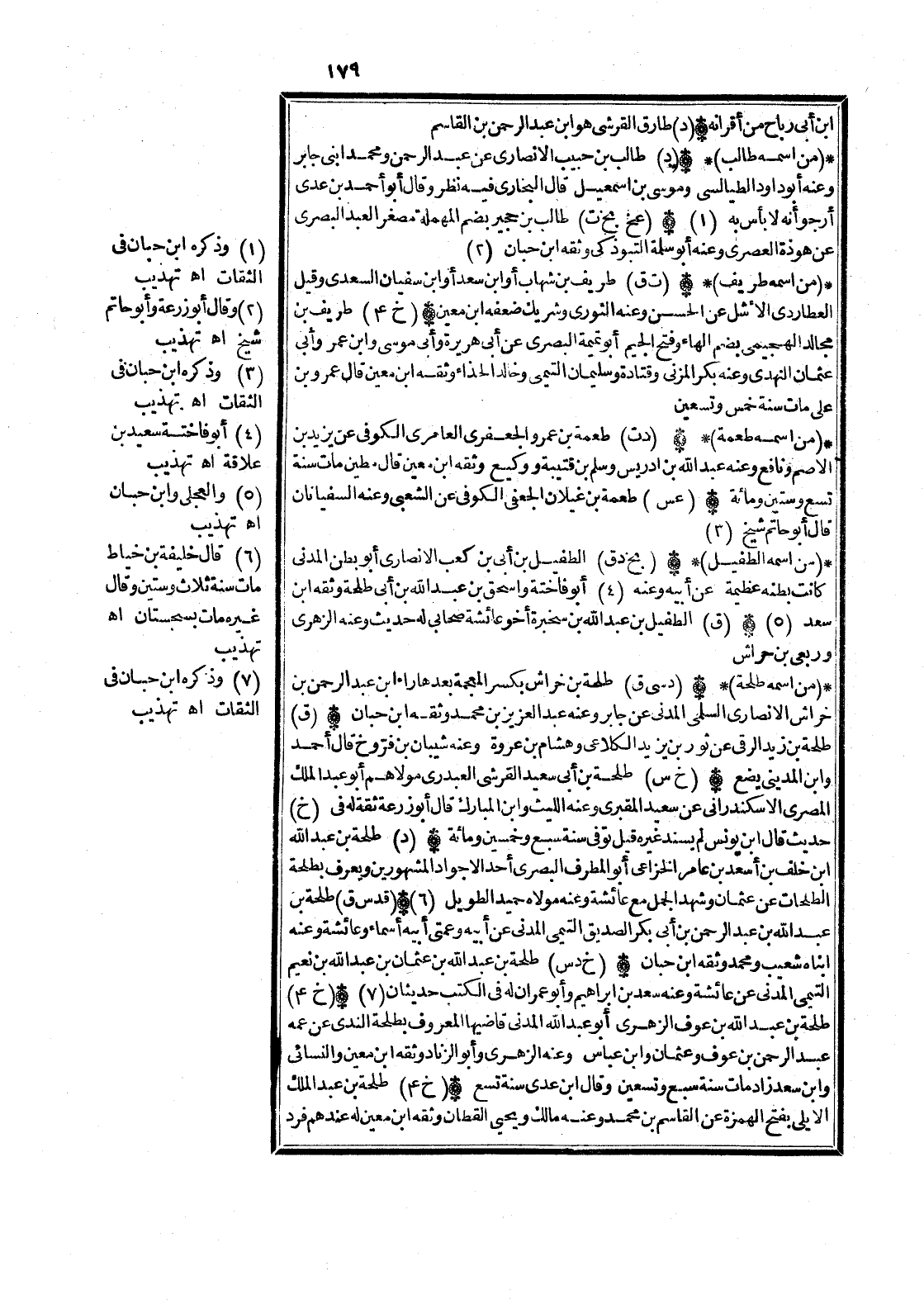 (خَ ع أ) طَلْحَة بن عبد الْملك الْأَيْلِي بِفَتْح الْهمزَة عَن الْقَاسِم بن مُحَمَّد وَعنهُ مَالك وَيحيى الْقطَّان وَثَّقَهُ ابْن معِين لَهُ عِنْدهم فَرد هَامِش