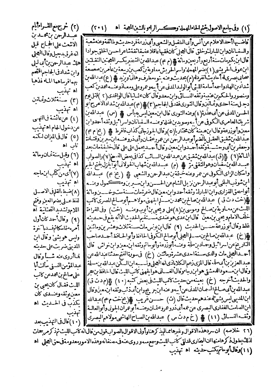 (10) قَالَ فِي التَّهْذِيب بعد أَن سرد هَذِه الْأَقْوَال وَغَيرهمَا مِمَّا لم يذكر هُنَا وَأولى الْأَقْوَال بِالصَّوَابِ قَول من قَالَ أَنه كَاتب اللَّيْث ثمَّ ذكر مرجحات لذَلِك يطول ذكرهَا مِنْهَا أَن البُخَارِيّ قد لَقِي كَاتب اللَّيْث وَسمع مِنْهُ وروى عَنهُ فِي مصنفاته وَهَذِه الْأُمُور مَعْدُومَة فِي حق الْعجلِيّ اه