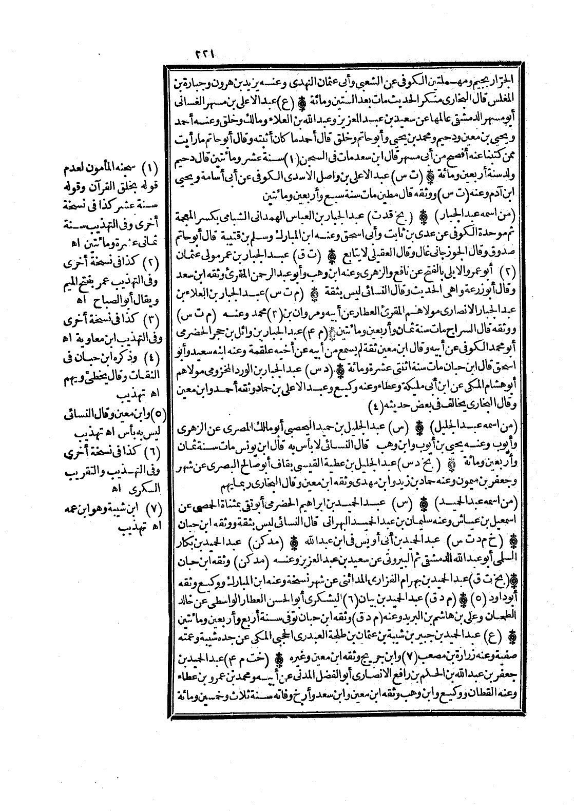 (1) سجنه الْمَأْمُون لعدم قَوْله بِخلق الْقُرْآن وَقَوله سنة عشر كَذَا فِي نُسْخَة أُخْرَى وَفِي التَّهْذِيب سنة ثَمَانِي عشر وَمِائَتَيْنِ اه