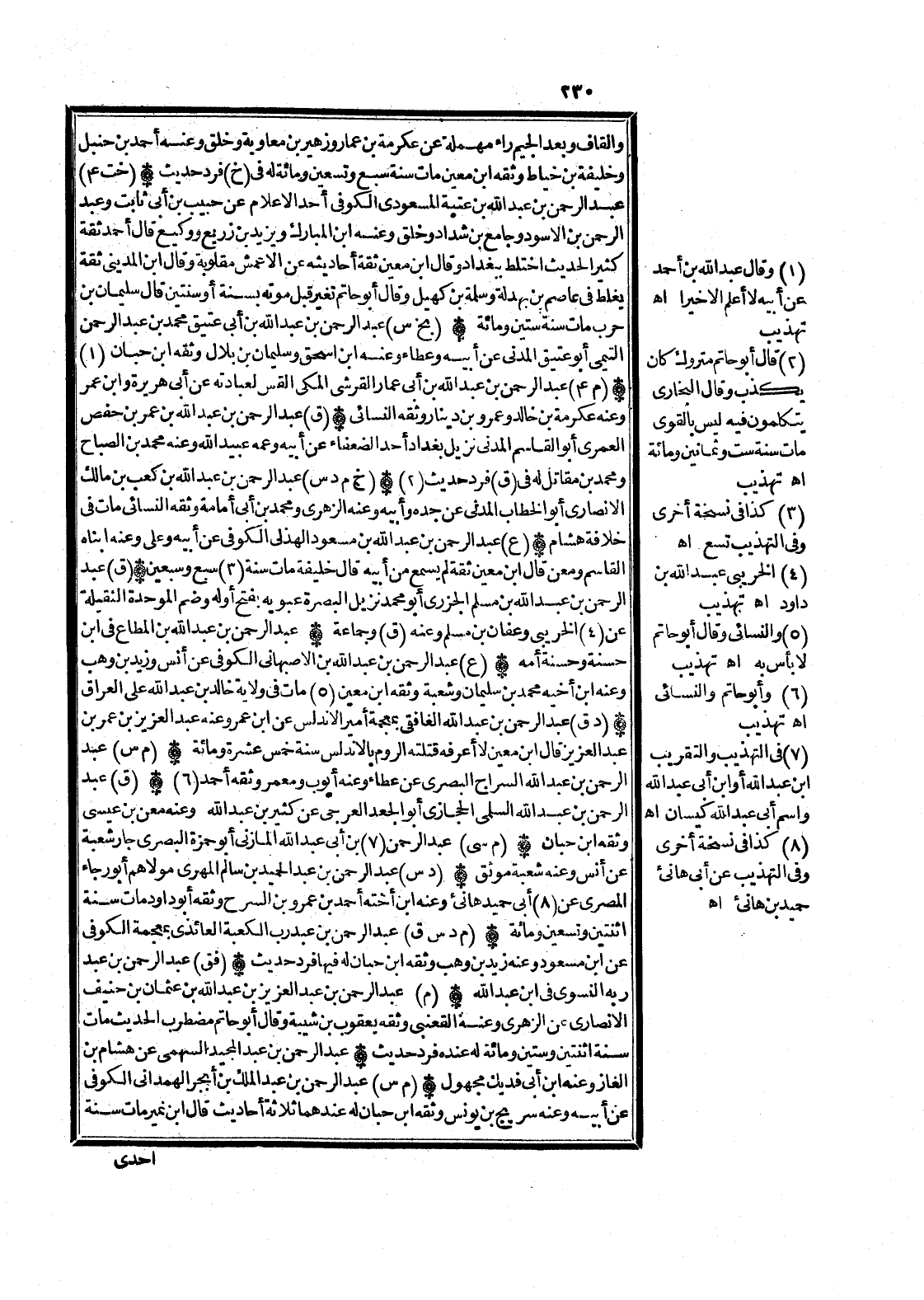 (ع) عبد الرَّحْمَن بن عبد الله بن الْأَصْبَهَانِيّ الْكُوفِي عَن أنس وَزيد بن وهب وَعنهُ ابْن أَخِيه مُحَمَّد بن سُلَيْمَان وَشعْبَة وَثَّقَهُ ابْن معِين (5) مَاتَ فِي ولَايَة خَالِد بن عبد الله على الْعرَاق
