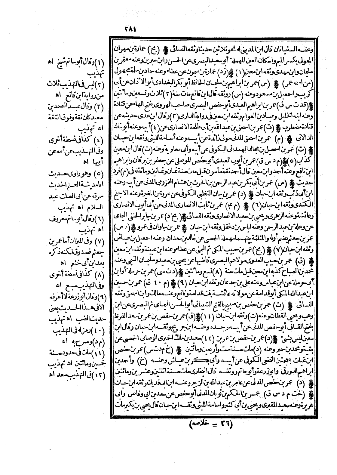 (ت) عمر بن حَفْص بن صبيح بِالْفَتْح الشَّيْبَانِيّ أَبُو الْحسن اليمامي ثمَّ الْبَصْرِيّ عَن ابْن وهب وَيحيى الْقطَّان وَعنهُ (ت) وَثَّقَهُ ابْن حبَان (11)