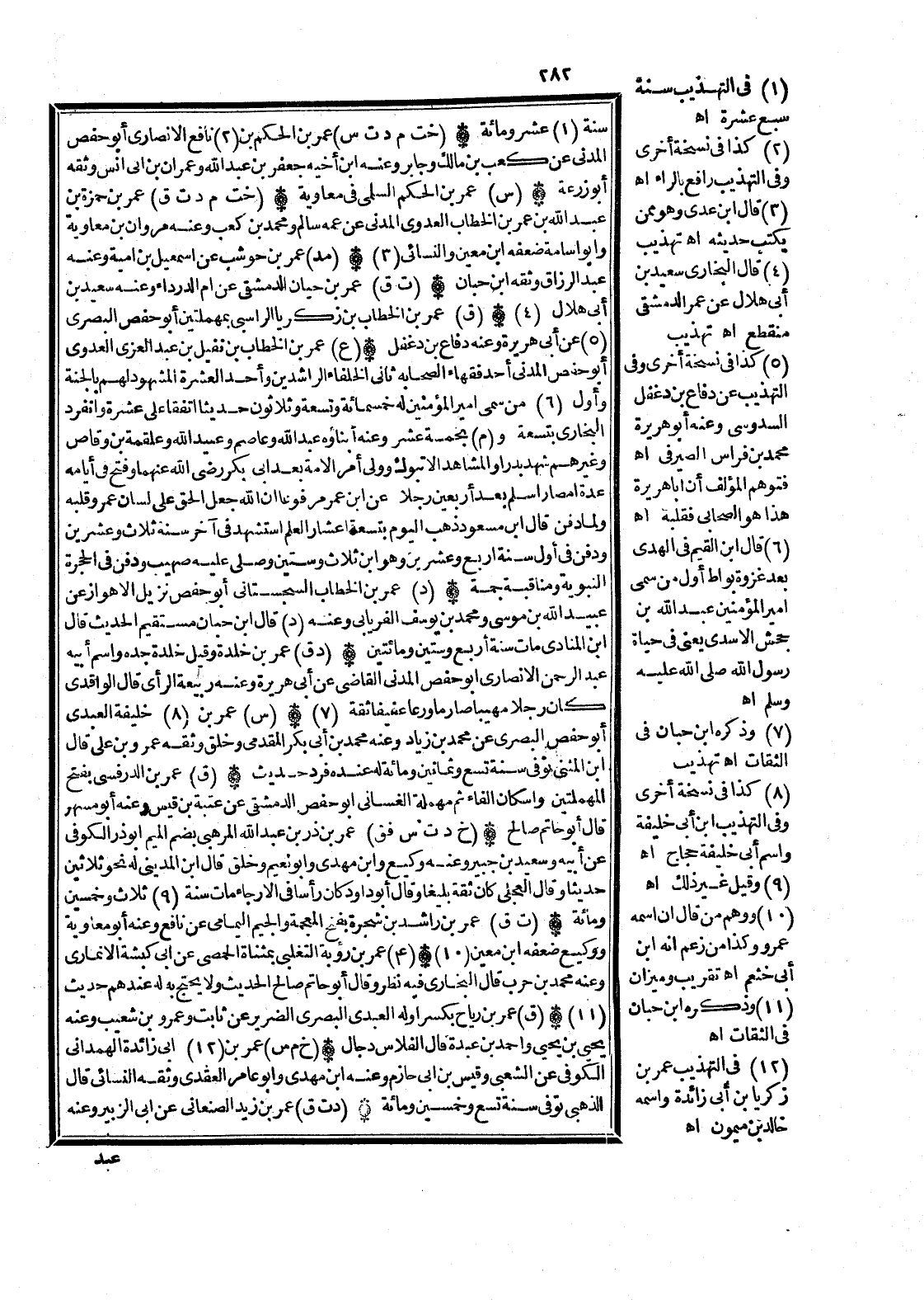 (12) فِي التَّهْذِيب عمر بن زَكَرِيَّا بن أبي زَائِدَة واسْمه خَالِد بن مَيْمُون اه