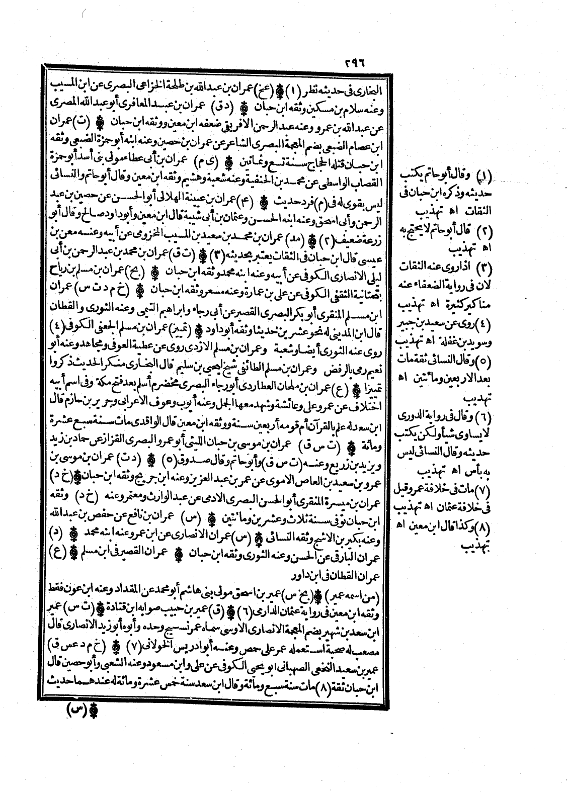 (ت س ق) عمرَان بن مُوسَى بن حبَان اللَّيْثِيّ أَبُو عَمْرو الْبَصْرِيّ الْقَزاز عَن حَمَّاد بن زيد وَيزِيد بن زُرَيْع وَعنهُ (ت س ق) وَأَبُو حَاتِم وَقَالَ صَدُوق (5)
