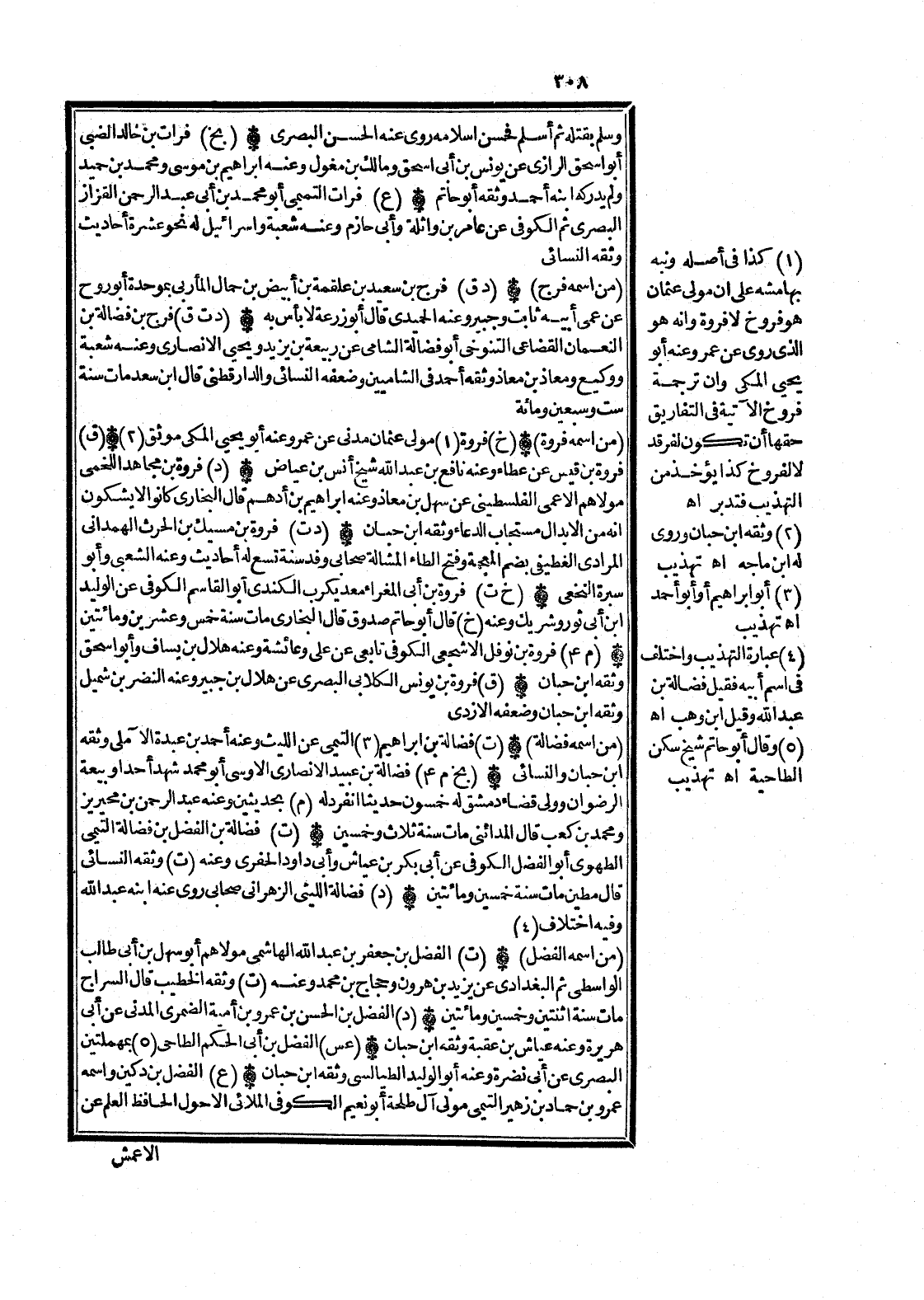 (ع) الْفضل بن دُكَيْن واسْمه عَمْرو بن حَمَّاد بن زُهَيْر التَّيْمِيّ مولى آل طَلْحَة أَبُو نعيم الْكُوفِي الْملَائي الْأَحول الْحَافِظ الْعلم عَن هَامِش