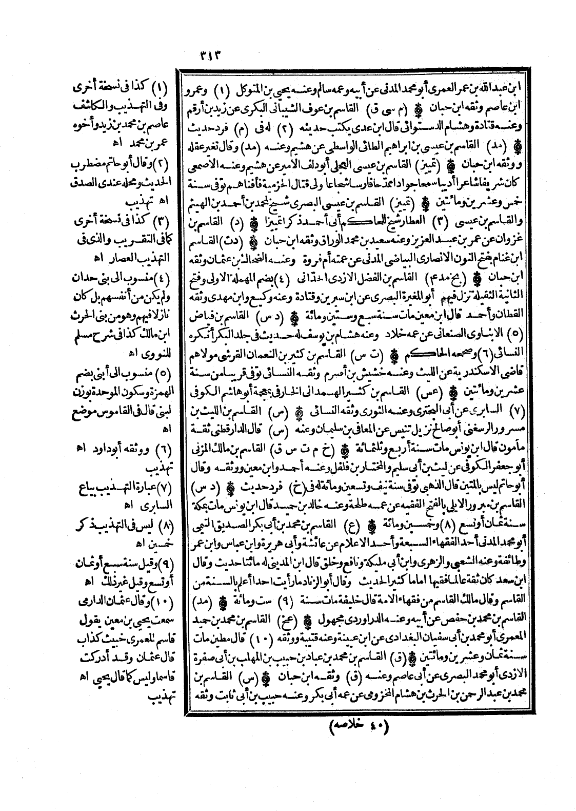 (س) الْقَاسِم بن مُحَمَّد بن عبد الرَّحْمَن بن الْحَرْث بن هِشَام المَخْزُومِي عَن عَمه أبي بكر وَعنهُ حبيب بن أبي ثَابت وَثَّقَهُ هَامِش