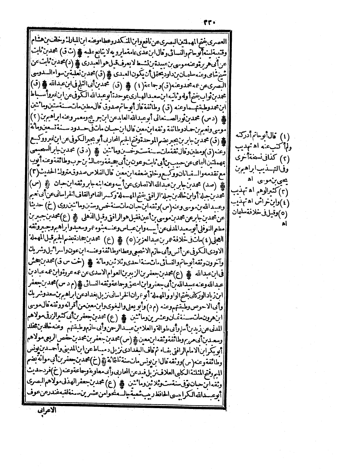 (ع) مُحَمَّد بن جَعْفَر الْهُذلِيّ مَوْلَاهُم الْبَصْرِيّ أَبُو عبيد الله الْكَرَابِيسِي الْحَافِظ ربيب شُعْبَة جالسه نَحوا من عشْرين سنة لقبه غنْدر عَن عَوْف هَامِش