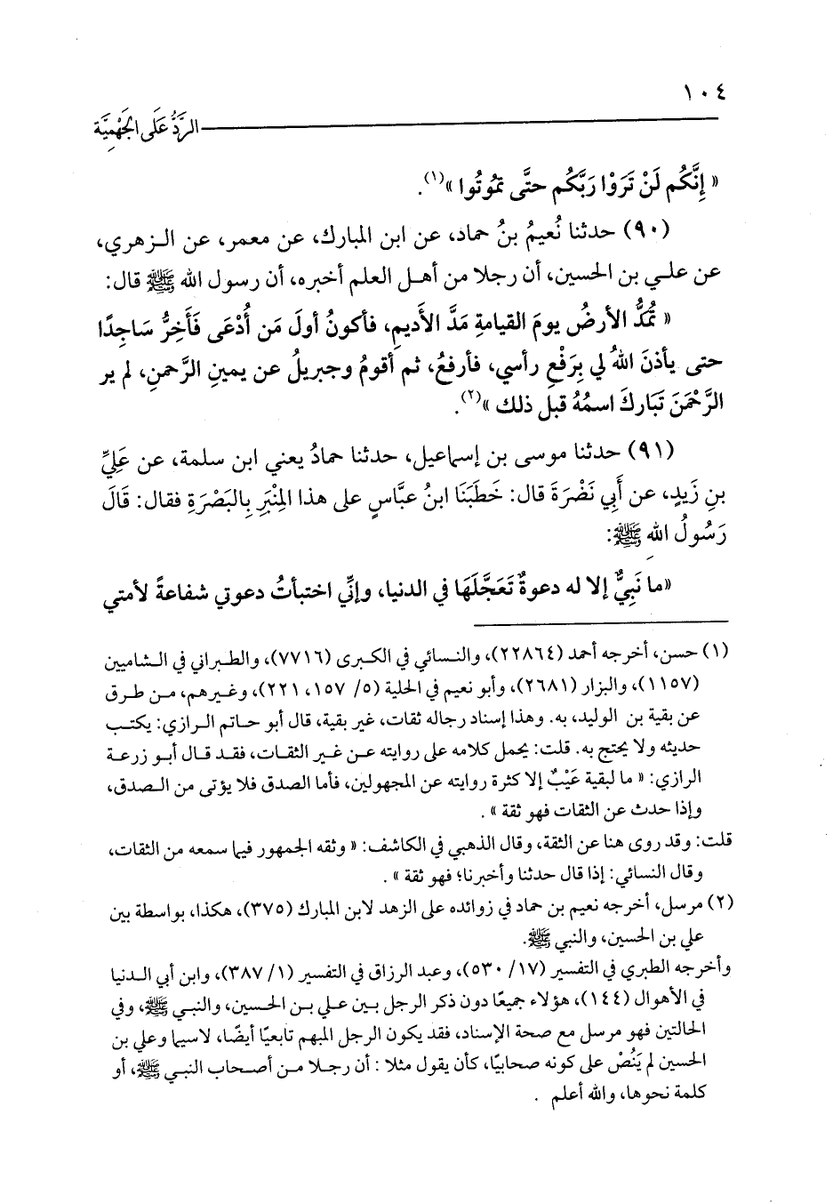 (90) حدثنا نُعيمُ بنُ حماد، عن ابن المبارك، عن معمر، عن الزهري، عن علي بن الحسين، أن رجلا من أهل العلم أخبره، أن رسول الله - صلى الله عليه وسلم - قال: