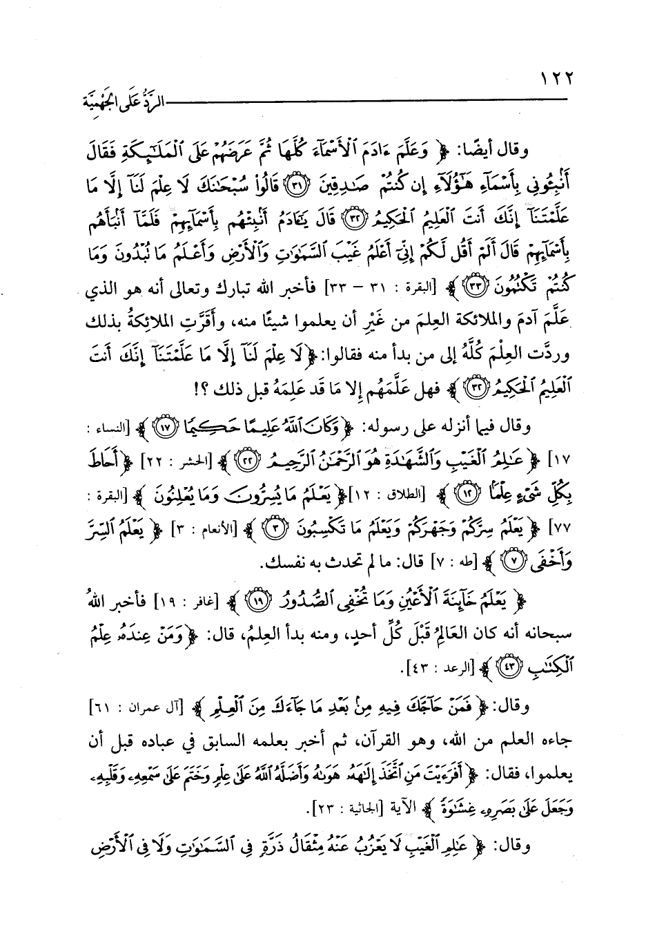وقال أيضًا: {وَعَلَّمَ آدَمَ الْأَسْمَاءَ كُلَّهَا ثُمَّ عَرَضَهُمْ عَلَى الْمَلَائِكَةِ فَقَالَ أَنْبِئُونِي بِأَسْمَاءِ هَؤُلَاءِ إِنْ كُنْتُمْ صَادِقِينَ (31) قَالُوا سُبْحَانَكَ لَا عِلْمَ لَنَا إِلَّا مَا عَلَّمْتَنَا إِنَّكَ أَنْتَ الْعَلِيمُ الْحَكِيمُ (32) قَالَ يَاآدَمُ أَنْبِئْهُمْ بِأَسْمَائِهِمْ فَلَمَّا أَنْبَأَهُمْ بِأَسْمَائِهِمْ قَالَ أَلَمْ أَقُلْ لَكُمْ إِنِّي أَعْلَمُ غَيْبَ السَّمَاوَاتِ وَالْأَرْضِ وَأَعْلَمُ مَا تُبْدُونَ وَمَا كُنْتُمْ تَكْتُمُونَ (33)} [البقرة: 31 - 33] فأخبر الله تبارك وتعالى أنه هو الذي عَلَّمَ آدمَ والملائكة العِلمَ من غَيْرِ أن يعلموا شيئًا منه، وأَقَرَّتِ الملائِكةُ بذلك وردَّت العِلْمَ كُلَّهُ إلى من بدأ منه فقالوا: {لَا عِلْمَ لَنَا إِلَّا مَا عَلَّمْتَنَا إِنَّكَ أَنْتَ الْعَلِيمُ الْحَكِيمُ (32)} فهل عَلَّمَهُم إِلا مَا قَد عَلِمَهُ قبل ذلك؟!