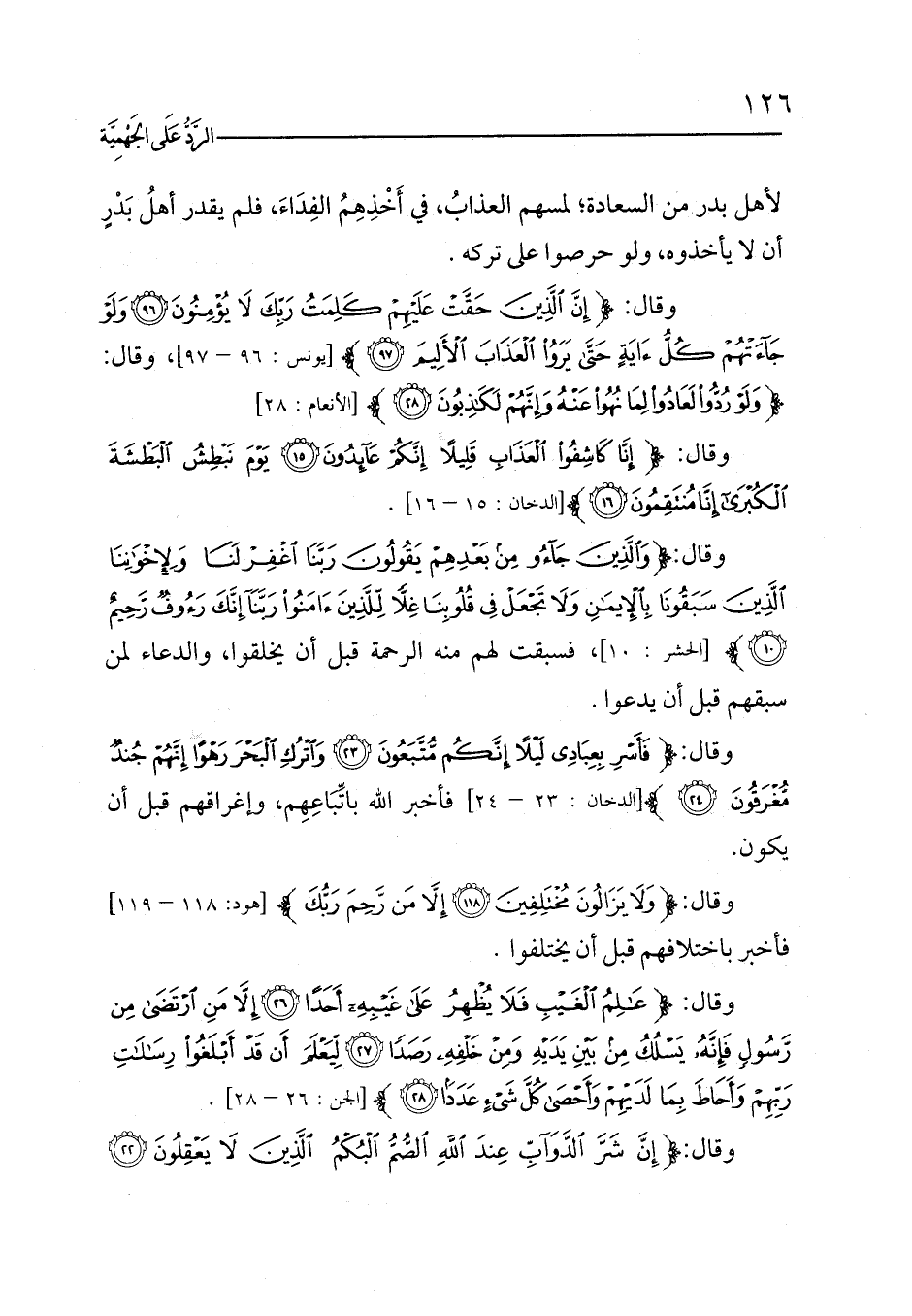 وقال: {إِنَّ الَّذِينَ حَقَّتْ عَلَيْهِمْ كَلِمَتُ رَبِّكَ لَا يُؤْمِنُونَ (96) وَلَوْ جَاءَتْهُمْ كُلُّ آيَةٍ حَتَّى يَرَوُا الْعَذَابَ الْأَلِيمَ (97)} [يونس: 96 - 97]، وقال: ... {وَلَوْ رُدُّوا لَعَادُوا لِمَا نُهُوا عَنْهُ وَإِنَّهُمْ لَكَاذِبُونَ (28)} [الأنعام: 28]