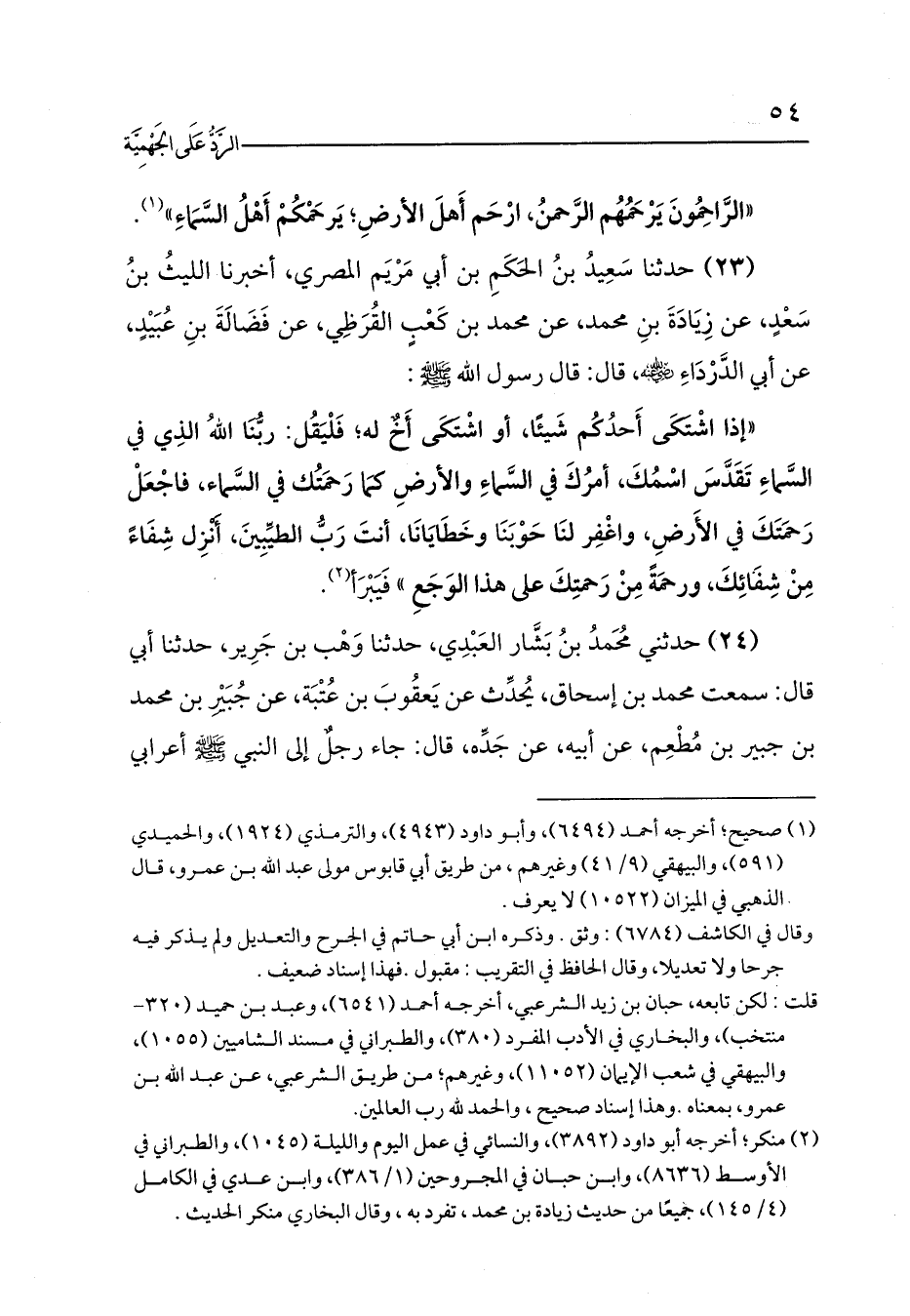 (23) حدثنا سَعِيدُ بنُ الحَكَمِ بن أبي مَرْيَم المصري، أخبرنا الليثُ بنُ سَعْدٍ، عن زِيَادَةَ بنِ محمد، عن محمد بن كَعْبٍ القُرَظِي، عن فَضَالَةَ بنِ عُبَيْدٍ، عن أبي الدَّرْدَاءِ - رضي الله عنه -، قال: قال رسول الله - صلى الله عليه وسلم -: