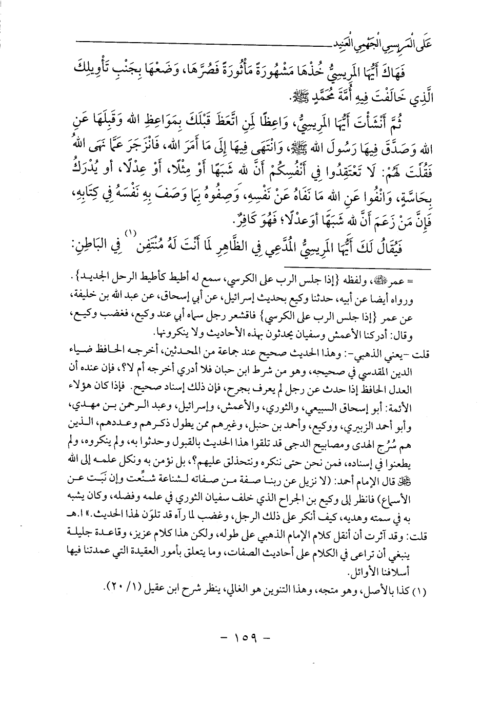 فَهَاكَ أَيُّهَا المَرِيسِيُّ خُذْهَا مَشْهُورَةً مَأْثُورَةً فَصُرَّهَا، وَضَعْهَا بِجَنْبِ تَأْوِيلِكَ الَّذِي خَالَفْتَ فِيهِ أُمَّةَ مُحَمَّدٍ - صلى الله عليه وسلم -.