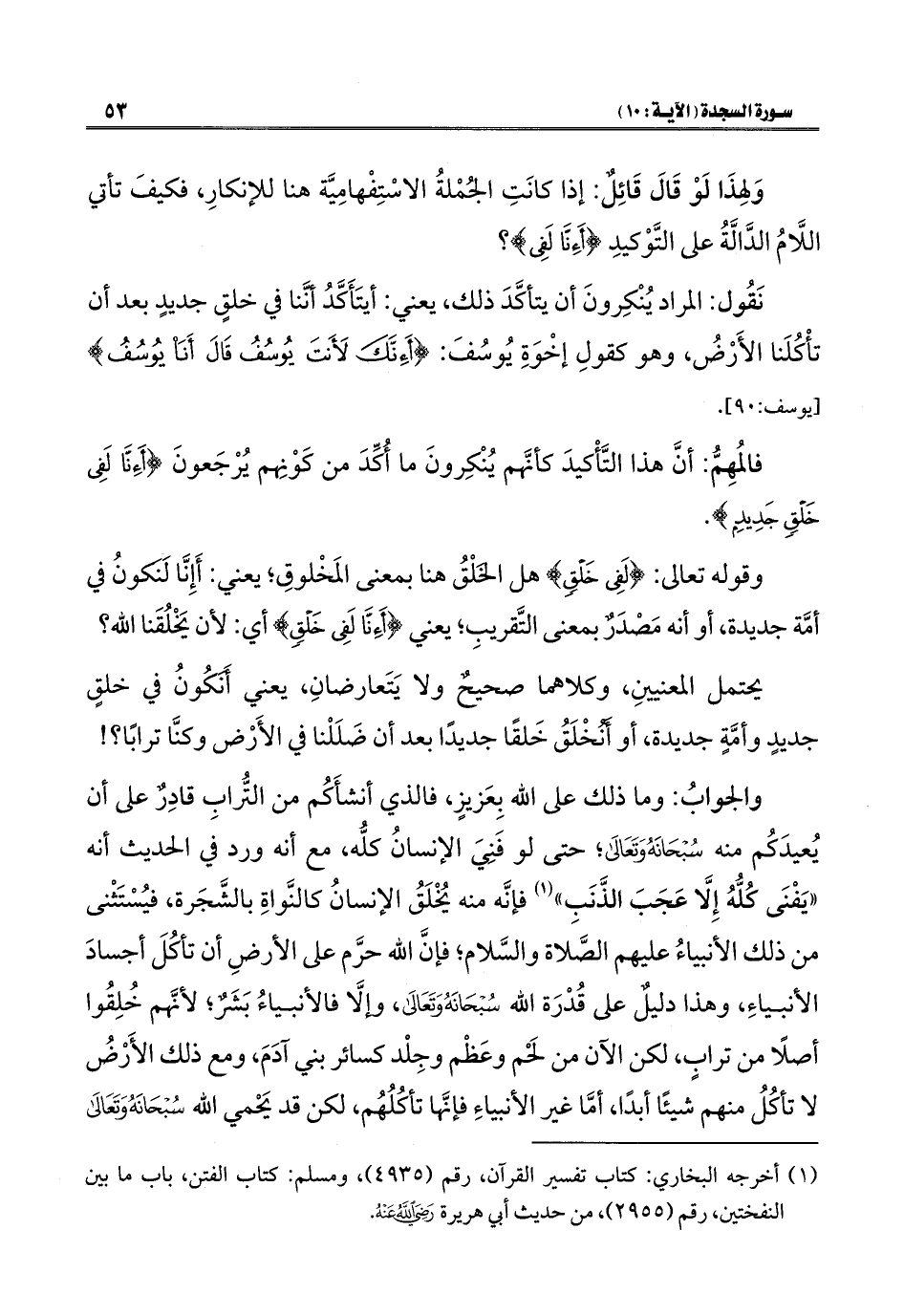 نَقُول: المراد يُنْكِرونَ أن يتأكَّدَ ذلك، يعني: أيتَأَكَّدُ أَنَّنا في خلقٍ جديدٍ بعد أن تأْكُلَنا الأَرْضُ، وهو كقولِ إخْوَةِ يُوسُفَ: {أَإِنَّكَ لَأَنْتَ يُوسُفُ قَالَ أَنَا يُوسُفُ} [يوسف: ٩٠].