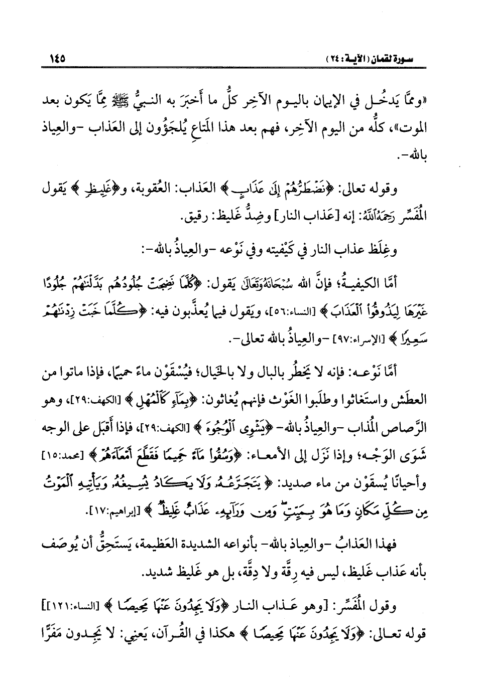 "وممَّا يَدخُل في الإيمان باليوم الآخِر كلُّ ما أَخبَرَ به النبيُّ -صلى اللَّه عليه وسلم- مِمَّا يَكون بعد الموت"، كلُّه من اليوم الآخِر، فهم بعد هذا المَتاعِ يُلجَؤُون إلى العَذاب -والعِياذ باللَّه-.