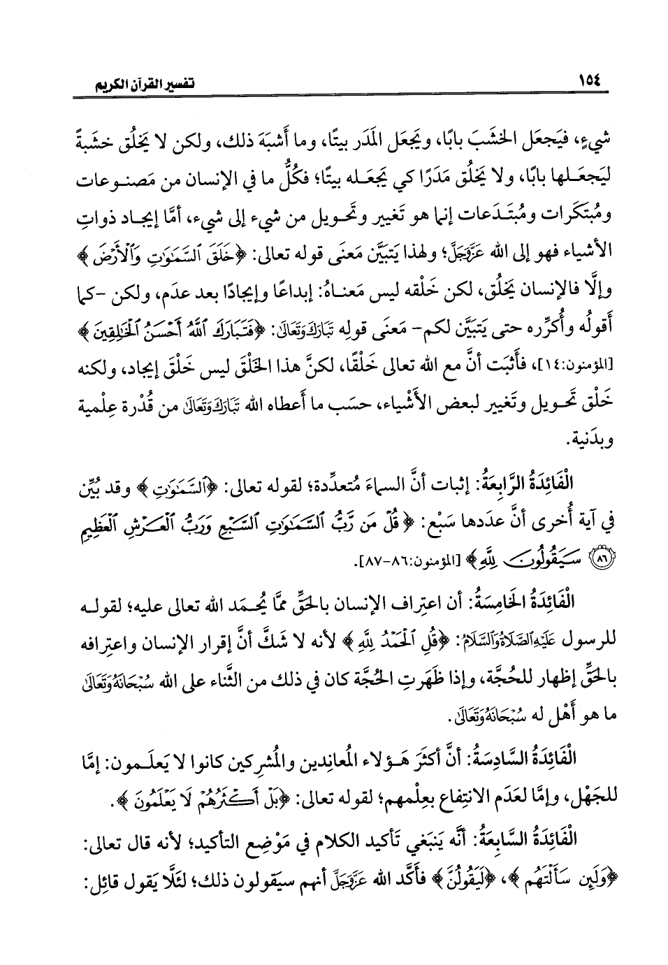 الْفَائِدَةُ الرَّابِعَةُ: إثبات أنَّ السماءَ مُتعدِّدة؛ لقوله تعالى: {السَّمَاوَاتِ} وقد بُيِّن في آية أُخرى أنَّ عدَدها سَبْع: {قُلْ مَنْ رَبُّ السَّمَاوَاتِ السَّبْعِ وَرَبُّ الْعَرْشِ الْعَظِيمِ (٨٦) سَيَقُولُونَ لِلَّهِ} [المؤمنون: ٨٦ - ٨٧].