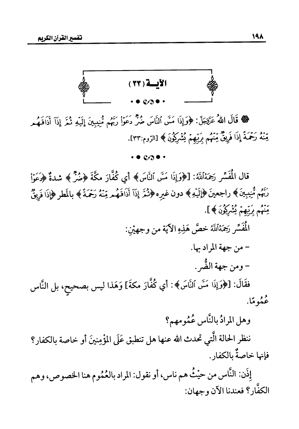 المُفَسِّر رَحَمَهُ اللهُ خصَّ هَذِهِ الآيَة من وجهيْنِ: