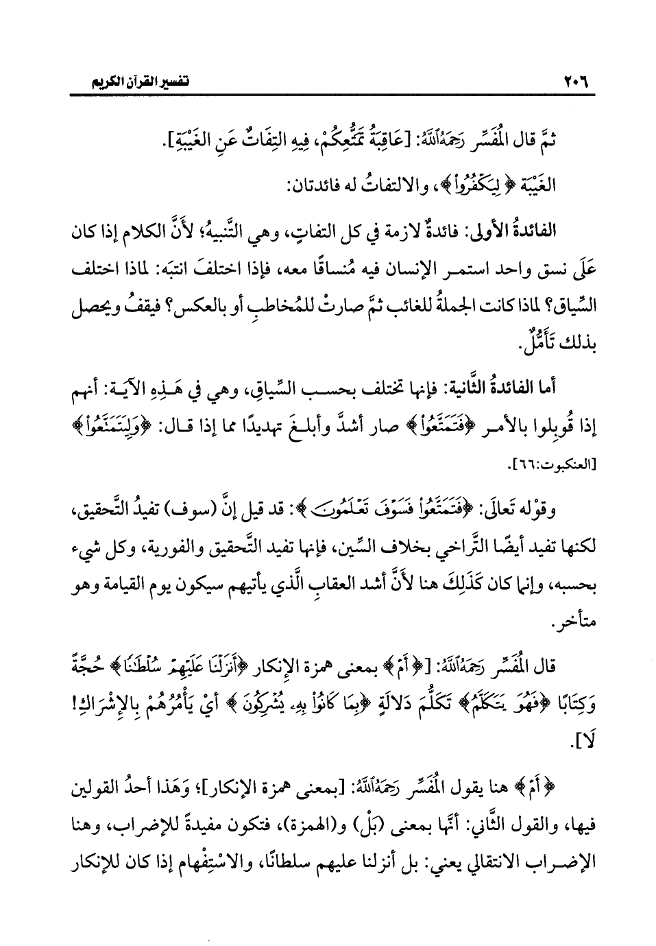 قال المُفَسِّر رَحَمَهُ اللهُ: [{أَمْ} بمعنى همزة الإِنكار {أَنْزَلْنَا عَلَيْهِمْ سُلْطَانًا} حُجَّةً وَكِتَابًا {فَهُوَ يَتَكَلَّمُ} تَكَلُّمَ دَلالَةٍ {بِمَا كَانُوا بِهِ يُشْرِكُونَ} أيْ يَأْمُرُهُمْ بِالإِشْرَاكِ! لَا].