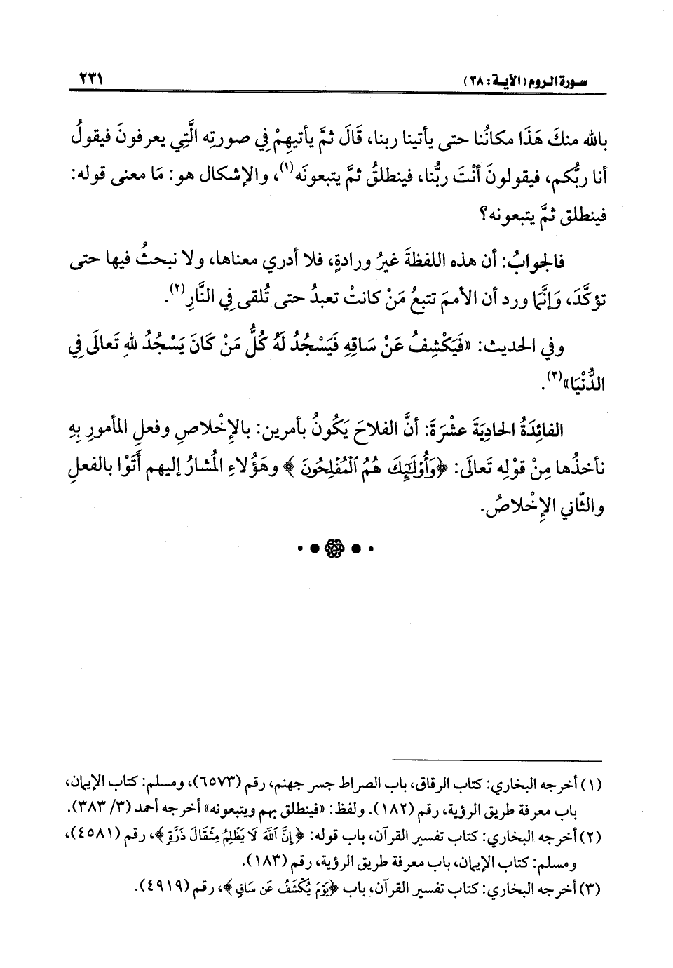 (¬٣) أخرجه البخاري: كتاب تفسير القرآن، باب {يَوْمَ يُكْشَفُ عَنْ سَاقٍ}، رقم (٤٩١٩).