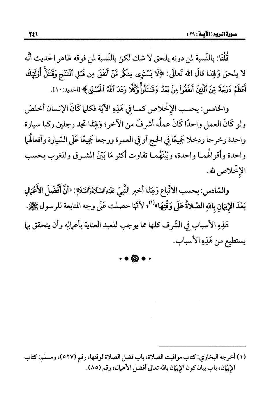 قُلْنَا: بالنّسبة لمن دونه يلحق لا شك لكن بالنّسبة لمن فوقه ظاهر الحديث أنه لا يلحق وَلِهَذا قالَ الله تَعالَى: {لَا يَسْتَوِي مِنْكُمْ مَنْ أَنْفَقَ مِنْ قَبْلِ الْفَتْحِ وَقَاتَلَ أُولَئِكَ أَعْظَمُ دَرَجَةً مِنَ الَّذِينَ أَنْفَقُوا مِنْ بَعْدُ وَقَاتَلُوا وَكُلًّا وَعَدَ الله الْحُسْنَى} [الحديد: ١٠].
