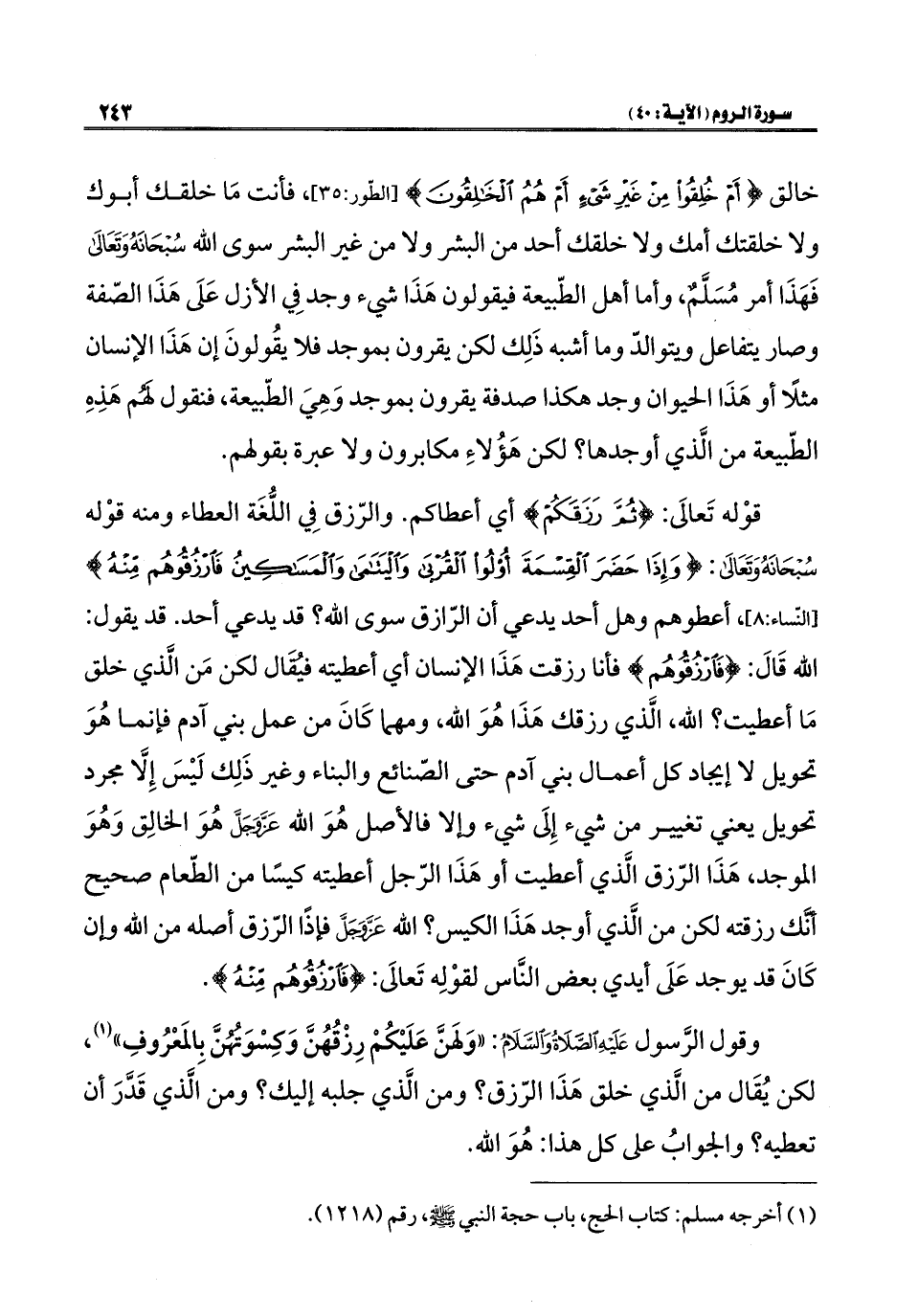 وقول الرَّسول - صلى الله عليه وسلم -: "وَلهَنَّ عَلَيْكُمْ رِزْقُهُنَّ وَكِسْوَتهُنَّ بِالمَعْرُوفِ" (¬١)، لكن يُقَال من الَّذي خلق هَذَا الرّزق؟ ومن الَّذي جلبه إليك؟ ومن الَّذي قَدَّرَ أن تعطيه؟ والجوابُ على كل هذا: هُوَ الله.