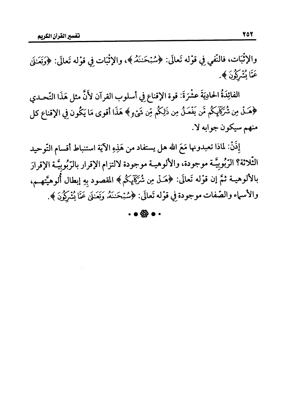 والإثْبَات، فالنّفي فِي قوْله تَعالَى: {سُبْحَانَهُ}، والإثْبَات فِي قوْله تَعالَى: {وَتَعَالَى عَمَّا يُشُرِكُونَ}.