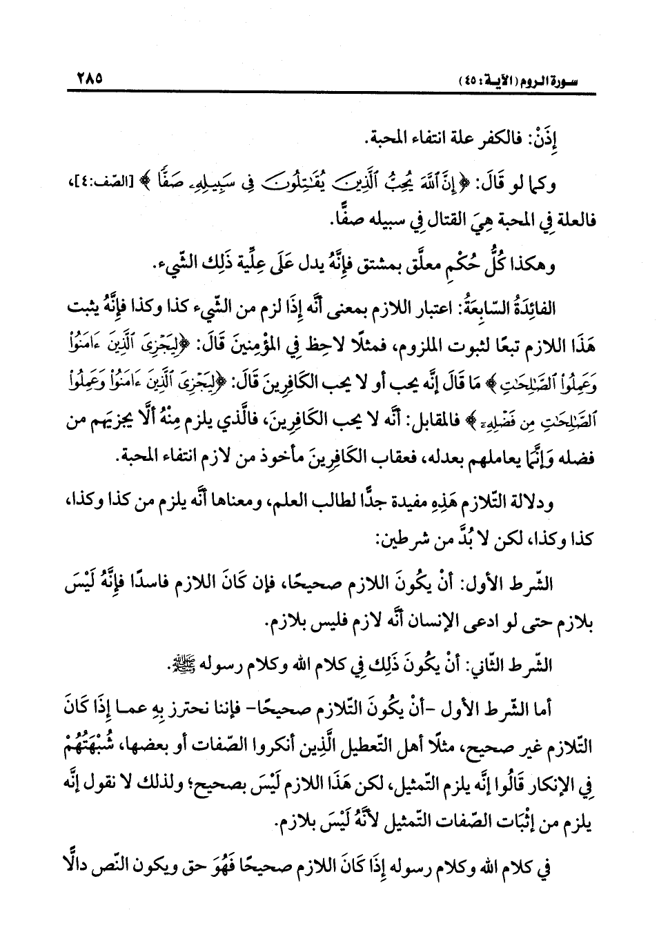 في كلام الله وكلام رسوله إِذَا كَانَ اللازم صحيحًا فَهُوَ حق ويكون النَّص دالًّا