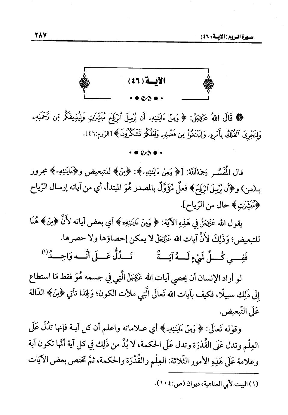 * قال المُفَسِّر رَحَمَهُ اللَّهُ: {وَمِنْ آيَاتِهِ}: {مِنْ} للتبعيض و {آيَاتِهِ} مجرور بـ (من) و {أَنْ يُرْسِلَ الرِّيَاحَ} فعل مُؤَوَّلٌ بالمصدر هُوَ المبتدأ، أي من آياته إرسال الرّياح {مُبَشِّرَاتٍ} حال من الرِّياح].