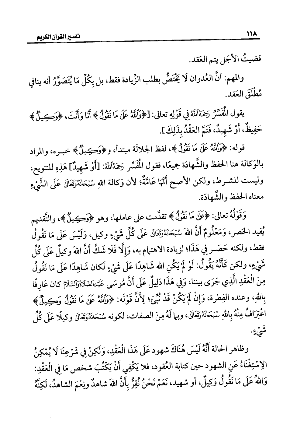 يقول المُفَسِّرُ رَحِمَهُ اللَّهُ فِي قَوْلِهِ تعالى: [{وَاللَّهُ عَلَى مَا نَقُولُ} أَنَا وَأَنْتَ، {وَكِيلٌ} حَفِيظٌ، أَوْ شَهِيدٌ، فَتَمَّ العَقْدُ بِذَلِكَ].