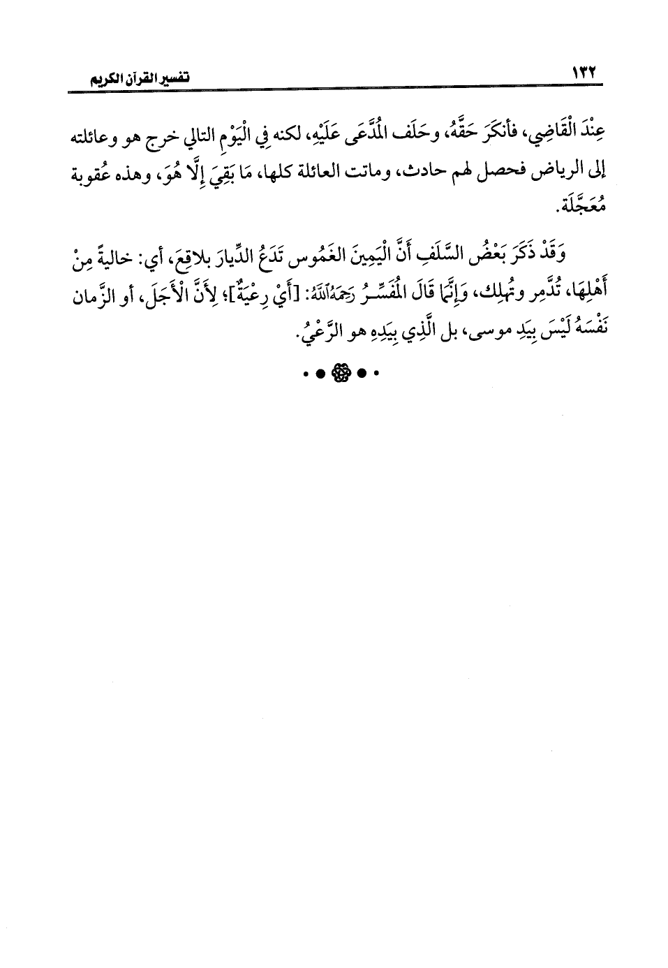 وَقَدْ ذَكَرَ بَعْضُ السَّلَفِ أَنَّ الْيَمِينَ الغَمُوس تَدَعُ الدِّيارَ بلاقِعَ، أي: خاليةً مِنْ أَهْلِهَا، تُدَّمِر وتُهلِك، وَإِنَّمَا قَالَ المُفَسِّرُ رَحِمَهُ اللَّهُ: [أَيْ رِعْيَةٌ]؛ لِأَنَّ الْأَجَلَ، أو الزَّمان نَفْسَهُ لَيْسَ بِيَدِ موسى، بل الَّذِي بِيَدِهِ هو الرَّعْيُ.
