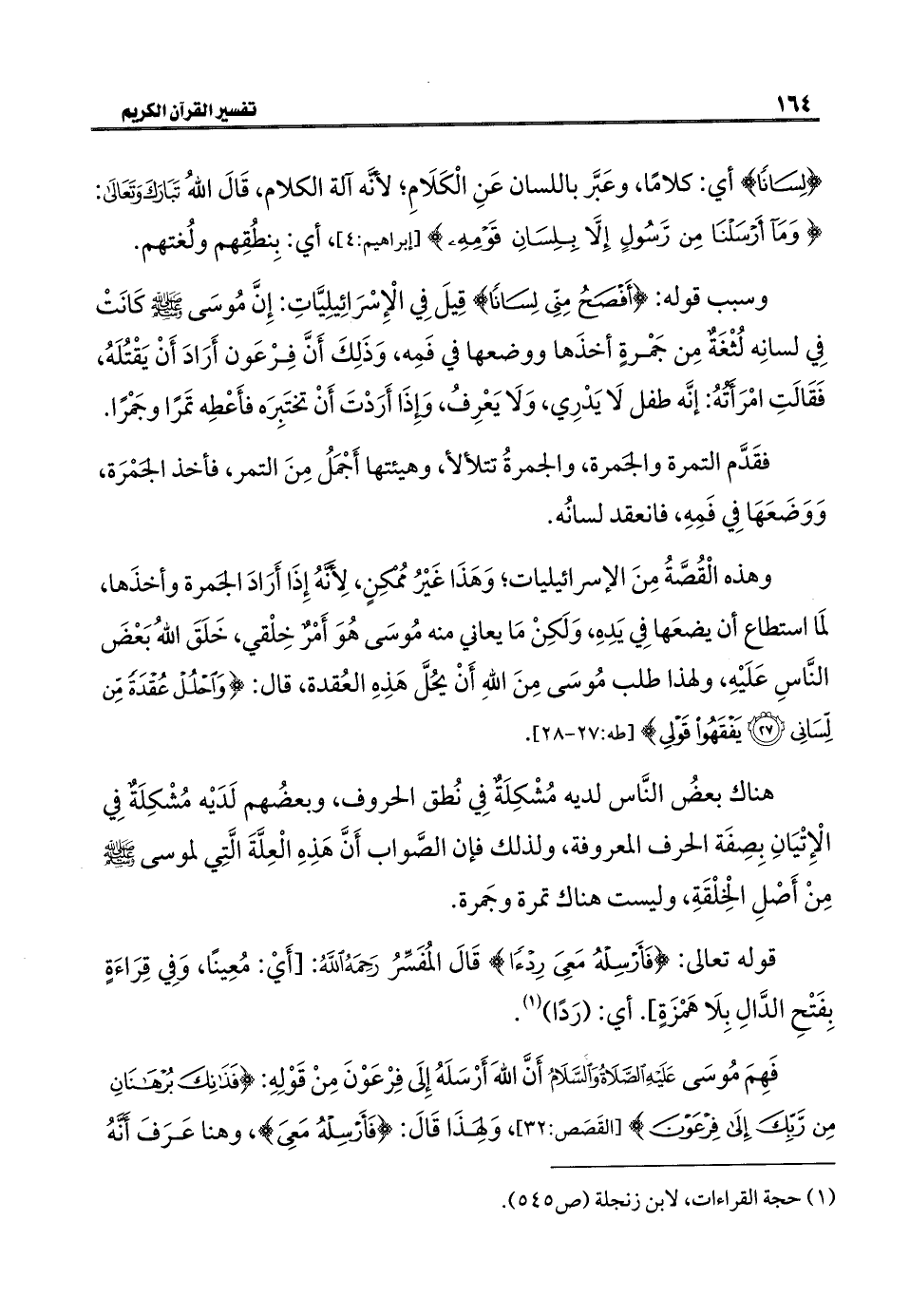 هناك بعضُ النَّاس لديه مُشْكِلَةٌ فِي نُطق الحروف، وبعضُهم لَدَيْه مُشْكِلَةٌ فِي الْإِتْيَانِ بِصِفَة الحرف المعروفة، ولذلك فإن الصَّواب أَنَّ هَذِهِ الْعِلَّةَ الَّتِى لموسى -صلى اللَّه عليه وسلم- مِنْ أَصْلِ الْخِلْقَةِ، وليست هناك تمرة وجَمرة.
