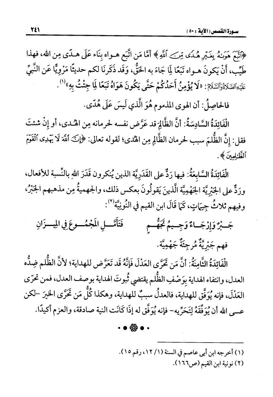جَبْرٌ وَإِرْجَاءٌ وَجِيمُ تَجَهُّمٍ ... فَتَأَمَّلِ المَجْمُوعَ فِي المِيزَانِ