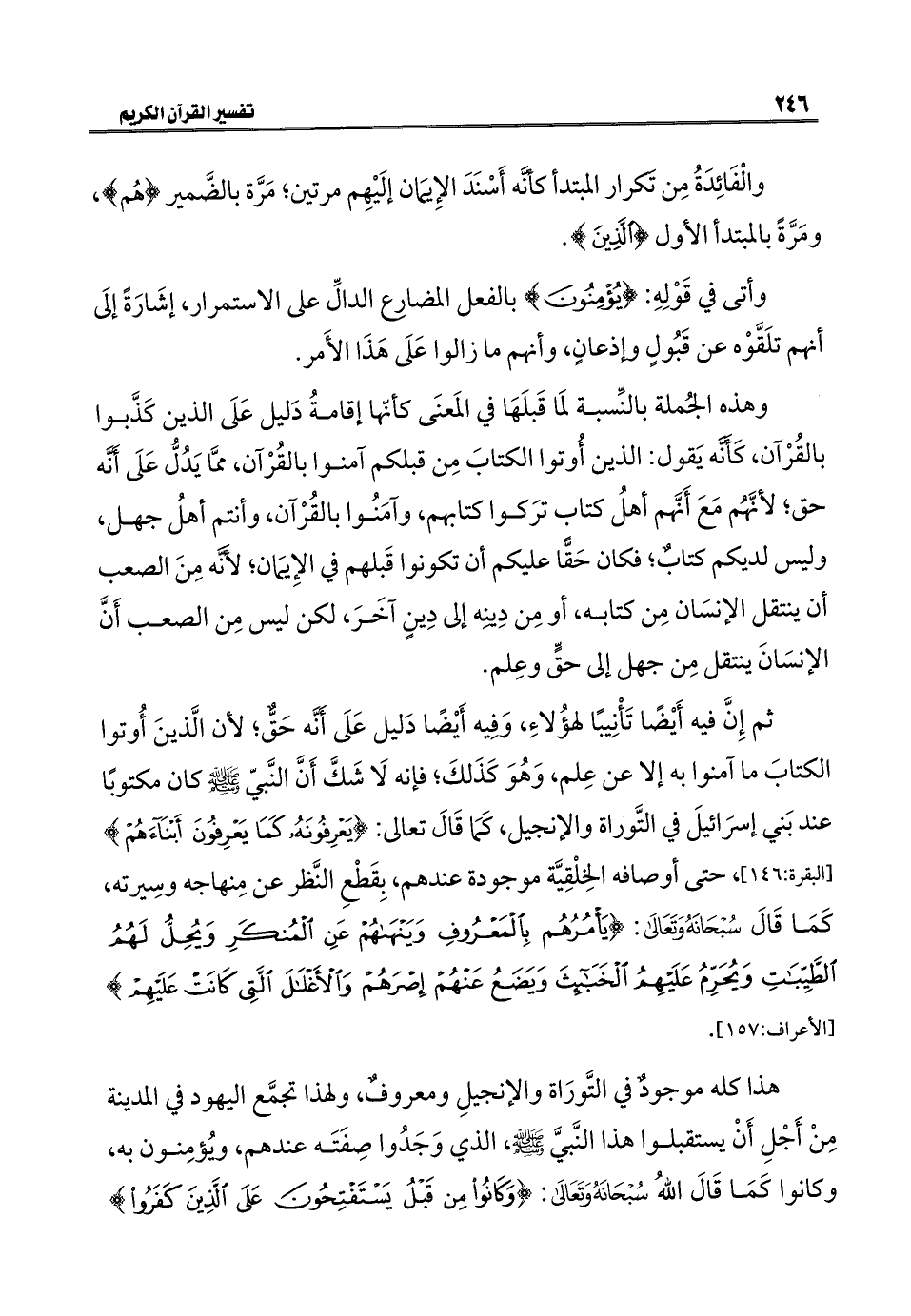 ثم إِنَّ فيه أَيْضًا تَأْنِيبًا لهؤُلاءِ، وَفِيه أَيْضًا دَليل عَلَى أَنَّه حَقٌّ؛ لأن الَّذينَ أُوتوا الكتابَ ما آمنوا به إلا عن عِلم، وَهُوَ كَذَلكَ؛ فإنه لَا شَكَّ أَنَّ النَّبيّ -صلى اللَّه عليه وسلم- كان مكتوبًا عند بَني إسرَائيلَ في التَّوراة والإنجيل، كَمَا قَالَ تعالى: {يَعْرِفُونَهُ كَمَا يَعْرِفُونَ أَبْنَاءَهُمْ} [البقرة: ١٤٦]، حتى أوصافه الخِلْقِيَّة موجودة عندهم، بِقَطْعِ النَّظر عن مِنهاجه وسِيرته، كَمَا قَالَ سُبْحَانَهُ وَتَعَالَى: {يَأْمُرُهُمْ بِالْمَعْرُوفِ وَيَنْهَاهُمْ عَنِ الْمُنْكَرِ وَيُحِلُّ لَهُمُ الطَّيِّبَاتِ وَيُحَرِّمُ عَلَيْهِمُ الْخَبَائِثَ وَيَضَعُ عَنْهُمْ إِصْرَهُمْ وَالْأَغْلَالَ الَّتِي كَانَتْ عَلَيْهِمْ} [الأعراف: ١٥٧].