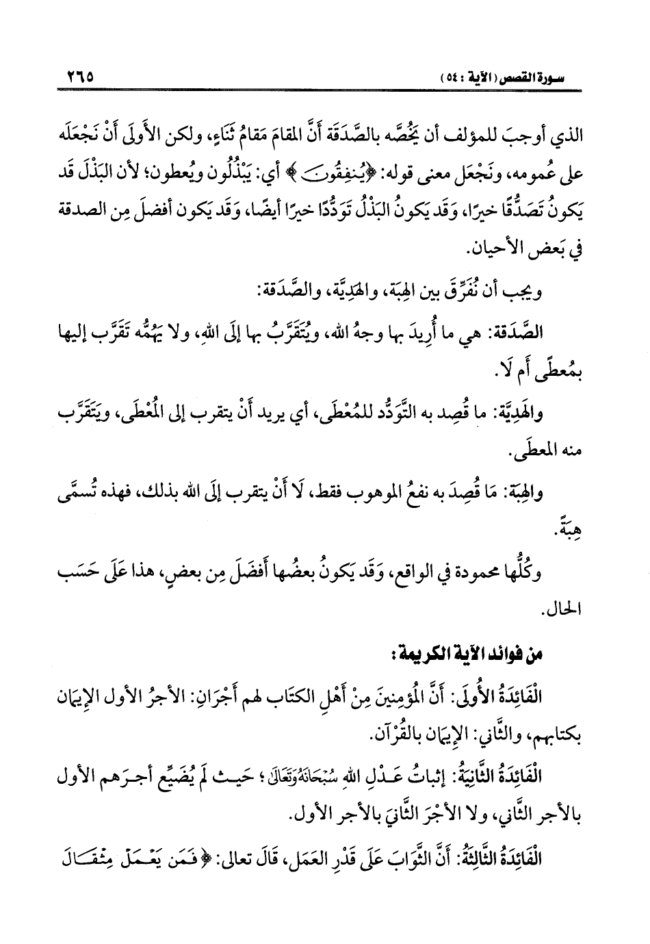الْفَائِدَةُ الأُولَى: أَنَّ المُؤمِنينَ مِنْ أَهْلِ الكتَاب لهم أَجْرَانِ: الأجرُ الأول الإِيمَان بكتابهم، والثَّاني: الإِيمَان بالقُرْآن.