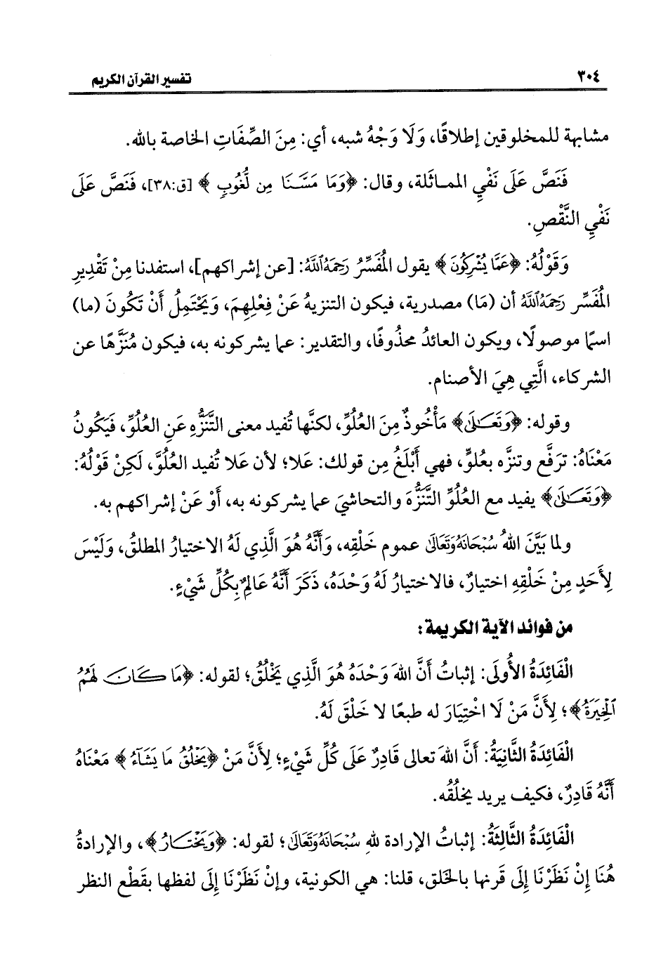 الْفَائِدَةُ الثَّالِثَةُ: إثباتُ الإرادة للَّهِ سُبْحَانَهُ وَتَعَالَى؛ لقوله: {وَيَخْتَارُ}، والإرادةُ هُنَا إِنْ نَظَرْنَا إِلَى قَرنها بالخَلق، قلنا: هي الكونية، وإنْ نَظَرْنَا إِلَى لفظها بقَطْع النظر