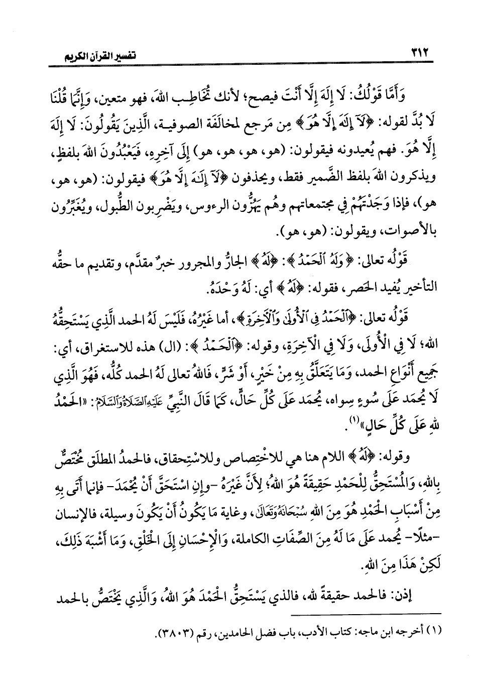 (¬١) أخرجه ابن ماجه: كتاب الأدب، باب فضل الحامدين، رقم (٣٨٠٣).