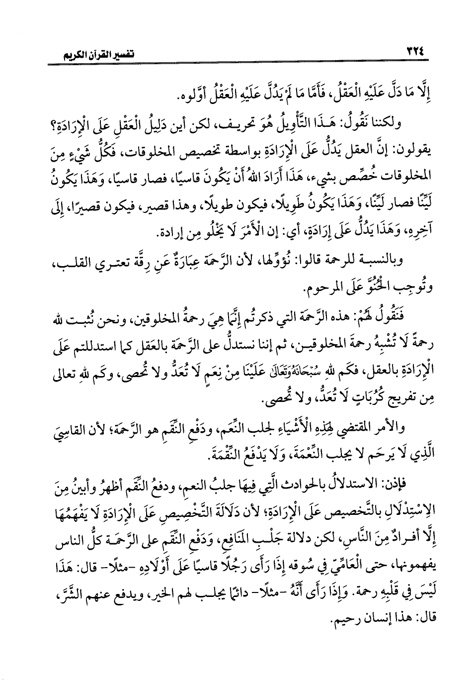 فَنَقُولُ لهمْ: هذه الرَّحمَة التي ذكرتُم إِنَّمَا هِيَ رحمةُ المخلوقين، ونحن نُثبت للَّه رحمةً لَا تُشْبِهُ رحمةَ المخلوقين، ثم إننا نستدلُّ على الرَّحمَة بالعَقل كما استدللتم عَلَى الْإِرَادَةِ بالعقل، فكَم للَّهِ سُبْحَانَهُ وَتَعَالَى عَلَيْنَا مِنْ نِعَمٍ لَا تُعَدُّ ولا تُحصى، وكَم للَّهِ تعالى مِن تفريج كُرُبَاتٍ لَا تُعَدُّ، ولا تُحصى.