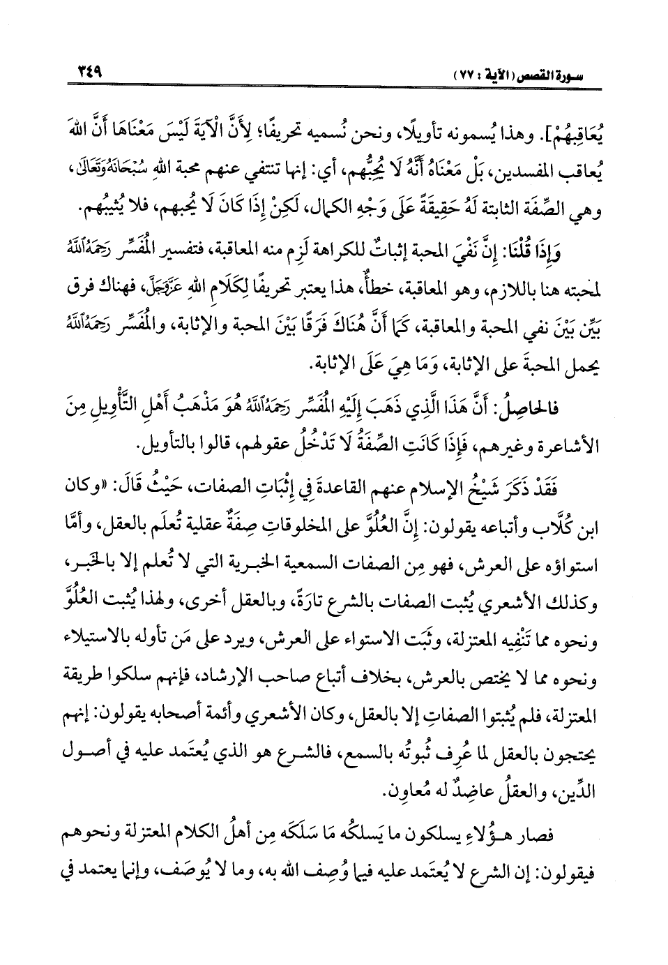 فالحاصِلُ: أَنَّ هَذَا الَّذِي ذَهَبَ إِلَيْهِ المُفَسِّر رَحِمَهُ اللَّهُ هُوَ مَذْهَبُ أَهْلِ التَّأْوِيلِ مِنَ الأشاعرة وغيرهم، فَإِذَا كَانَتِ الصِّفَةُ لَا تَدْخُلُ عقولهم، قالوا بالتأويل.