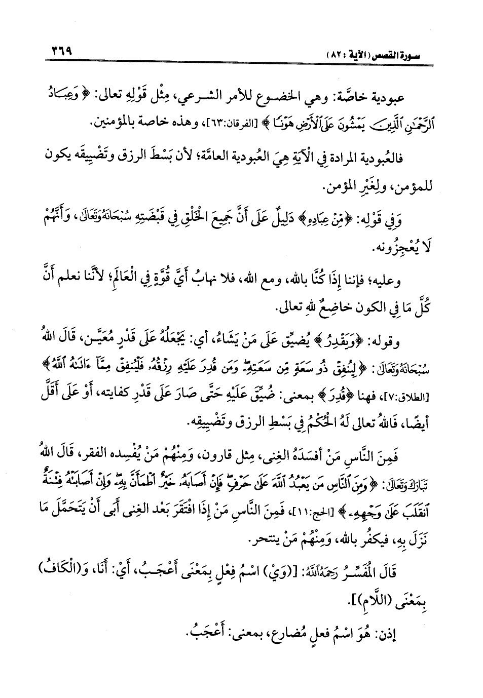 قَالَ المُفَسِّرُ رَحِمَهُ اللَّهُ: [(وَيْ) اسْمُ فِعْلٍ بِمَعْنَى أَعْجَبُ، أَيْ: أَنَا، وَ (الْكَافُ) بِمَعْنَى (اللَّامِ)].