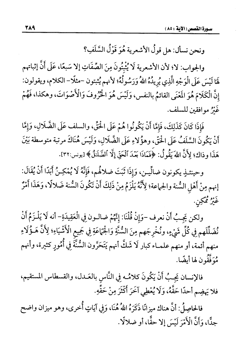 ونحن نسأل: هل قولُ الأشعرية هُوَ قَوْلُ السَّلَفِ؟