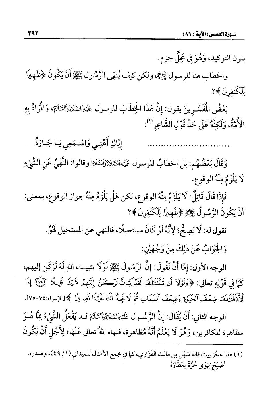 فَإِذَا قَالَ قَائِلٌ: لَا يَلْزَمُ مِنْهُ الوقوع، لكن هَلْ يَلْزَمُ مِنْهُ جواز الوقوع، بمعنى: أَنْ يَكُونَ الرَّسُولُ -صلى اللَّه عليه وسلم- {ظَهِيرًا لِلْكَافِرِينَ}؟