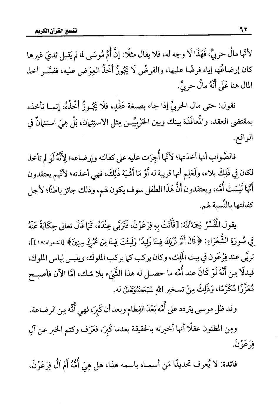 لأنَّها مالُ حربيٍّ، فَهَذَا لَا وجه له، فلا يقال مثلًا: إنَّ أُمَّ مُوسَى لما لم يَقبل ثديَ غيرها كان إرضاعُها إياه فرضًا عليها، والفرضُ لَا يَجُوزُ أَخْذُ العِوَض عليه، ففسَّر أخذ المال هنا عَلَى أنَّهُ مالُ حربيٍّ.