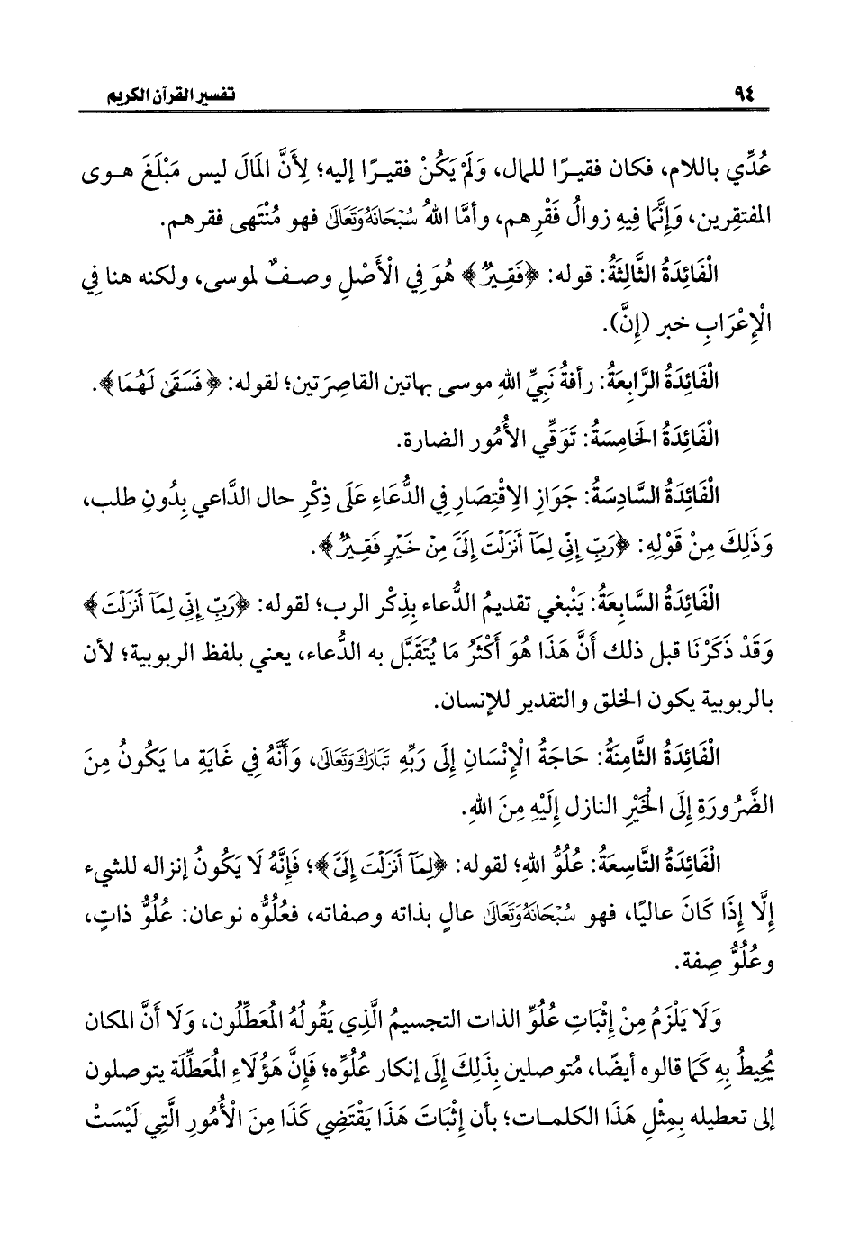 الْفَائِدَةُ الثَّالِثَةُ: قوله: {فَقِيرٌ} هُوَ فِي الْأَصْلِ وصفٌ لموسى، ولكنه هنا فِي الْإِعْرَابِ خبر (إِنَّ).