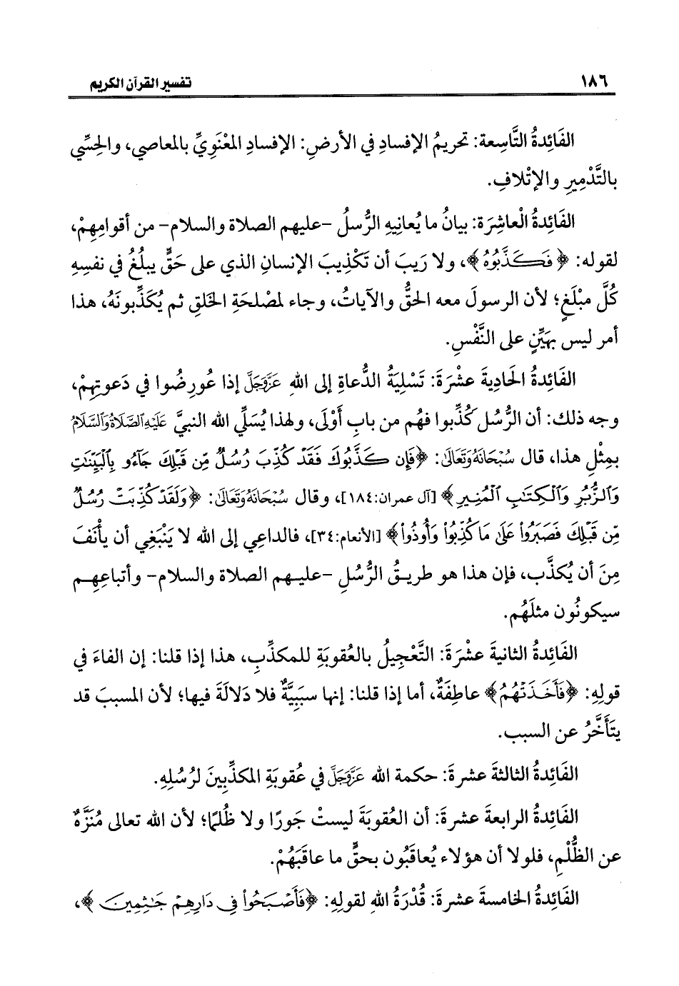 الفَائِدةُ الثالثةَ عشرةَ: حكمة اللَّه عَزَّ وَجَلَّ في عُقوبَةِ المكذِّبِينَ لرُسُلِهِ.