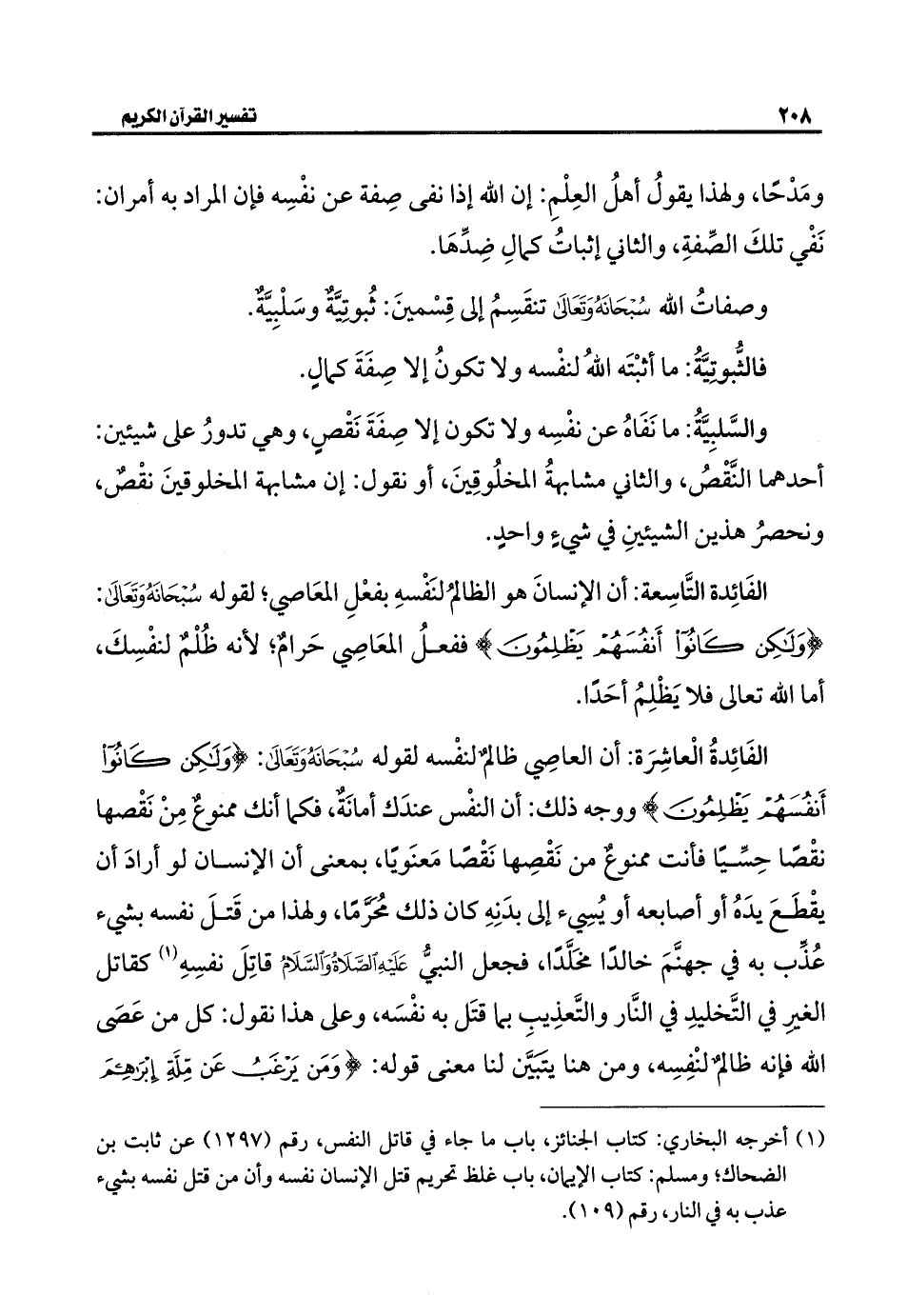 ومَدْحًا، ولهذا يقولُ أهلُ العِلْمِ: إن اللَّه إذا نفى صِفة عن نفْسِه فإن المراد به أمران: نَفْي تلكَ الصِّفةِ، والثاني إثباتُ كمالِ ضِدِّهَا.