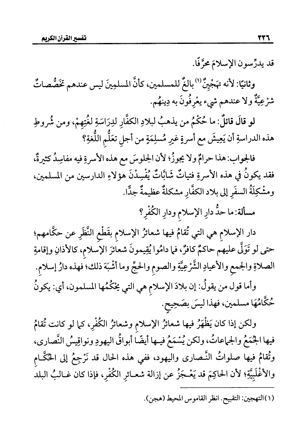 وثانيًا: لأنه تهَجْيِنٌ (¬١) بالغٌ للمسلمين، كأنَّ المسلمِينَ ليس عندهم تخَصُّصاتٌ شرْعِيَّةٌ ولا عندهم شيء يعْرِفُونَ به دِينهُم.