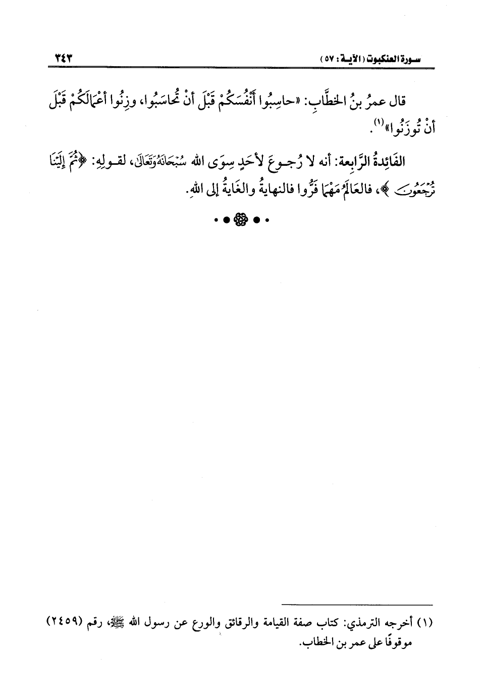 (¬١) أخرجه الترمذي: كتاب صفة القيامة والرقائق والورع عن رسول اللَّه -صلى اللَّه عليه وسلم-، رقم (٢٤٥٩) موقوفًا على عمر بن الخطاب.