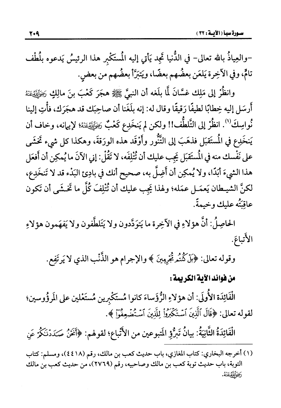 الْفَائِدَة الأُولَى: أن هؤلاءِ الرُّؤَساءَ كانوا مُستكْبِرين مُستَعْلين على المَرؤُوسين؛ لقوله تعالى: {قَالَ الَّذِينَ اسْتَكْبَرُوا لِلَّذِينَ اسْتُضْعِفُوا}.