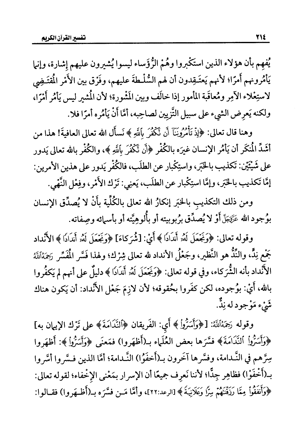 وقوله تعالى: {وَنَجْعَلَ لَهُ أَنْدَادًا} أَيْ: [شُرَكاءَ] {وَنَجْعَلَ لَهُ أَنْدَادًا} الأَنْداد جَمْع نِدٍّ، والنِّدُّ هو النَّظير، وجَعْلُ الأنداد لله تعالى شِرْك؛ ولهذا فَسَّر المُفَسِّر رَحِمَهُ اللَّهُ الأَنداد بأنه الشُّرَكاء، وفي قوله تعالى: {وَنَجْعَلَ لَهُ أَنْدَادًا} دليلٌ على أنهم لم يَكفُروا بالله، أَيْ: بوُجوده، لكن كفَروا بحُقوقه؛ لأن لازِمَ جَعْل الأنْداد: أن يَكون هناك شَيْء مَوْجود له نِدٌّ.
