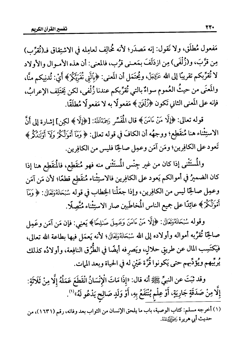 وقوله سُبْحَانَهُ وَتَعَالى: {إِلَّا مَنْ آمَنَ وَعَمِلَ صَالِحًا} يَعنِي: فإن مَن آمَن وعَمِل صالِحًا تُقرِّبه أمواله وأولاده إلى الله سُبْحَانَهُ وَتَعَالى؛ لأنه يَعمَل فيها بطاعة الله تعالى، فيَكتَسِب المال عن طريقٍ حلالٍ، ويَصرِفه أيضًا في الطُّرُق النافِعة، وأولادُه كذلك يُربِّيهم وُيؤدِّبهم حتى يَكونوا قرَّة عَيْنٍ له في الحياة وبعد الممات.